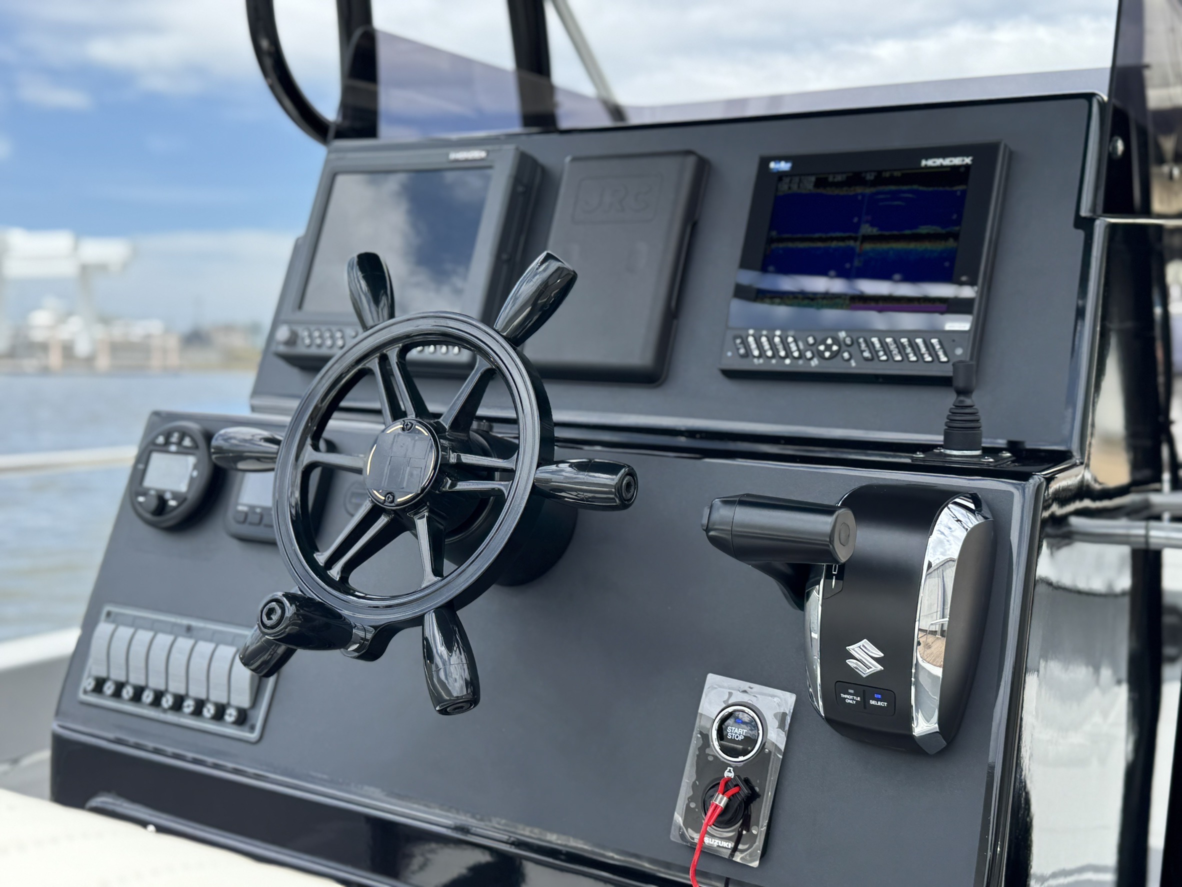 船体両弦(両サイド)にストロボフラッシャーを標準搭載 「自船から衝突する」事は無くても夜間航行で目立ちやすい存在に。ブラックハル横から出るストロボフラッシャーで一段とカッコ良く演出できる装備の一つ。 |