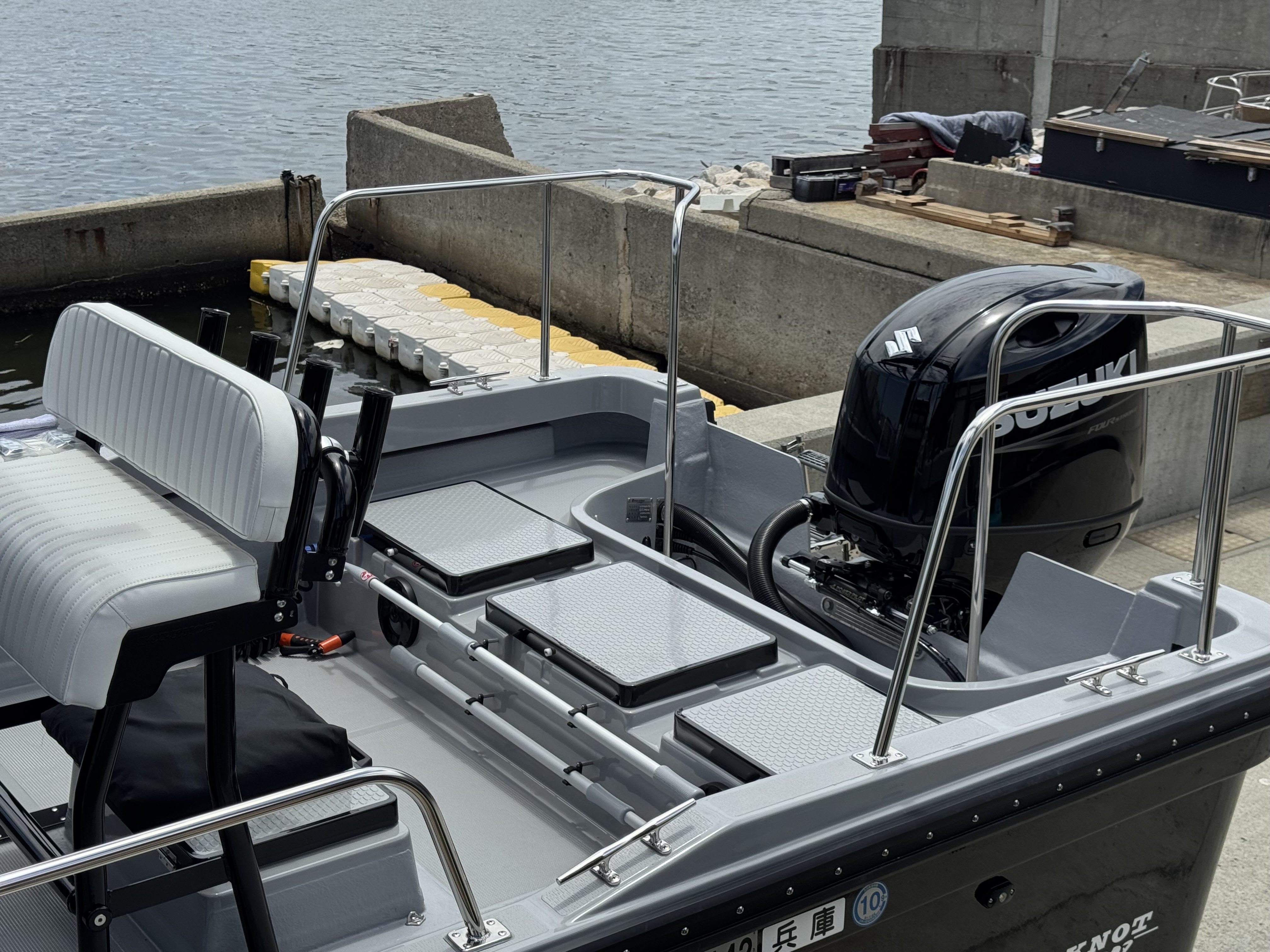 標準ハルカラー=ブラック・デッキカラー=グレー色。 塗装では無く、樹脂に着色をした物から製作して一般和船より綺麗で厚いゲルコート層が船を守ります。 イージーオーダーオプション選択:ブリリアントホワイト船体 特注オーダーオプション:お好みの船体色、マットブラック船体色等 |