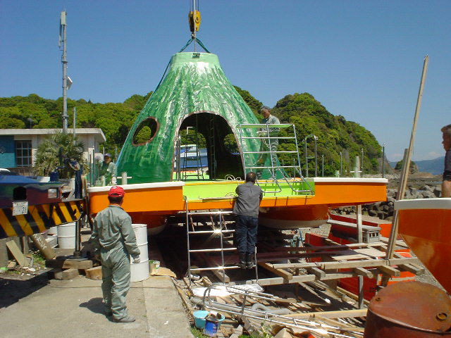 「コマーシャルボート」とは商用船の事。店舗の用に看板をててる事が出来ない分船全体でアピール。 一般的な船を利用せず乗船されるお客様の心に残る船の製造を目指しております。 観光・ダイビング・イメージ船やアトラクション船をキャンバスから現物まで作り上げます。