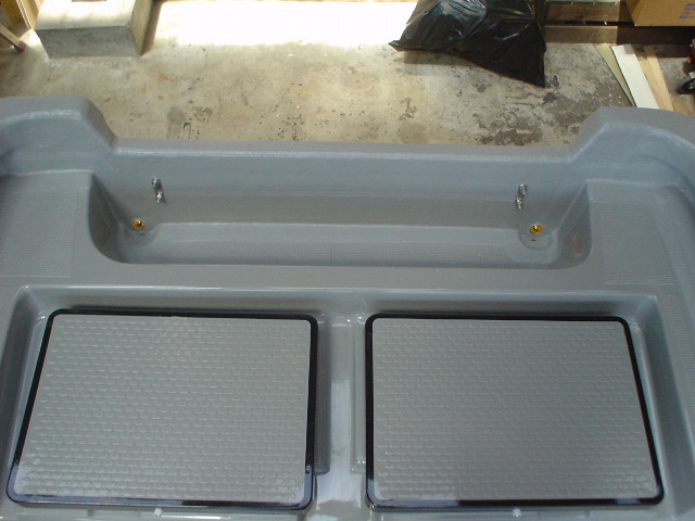 エンジンハーネスやケーブル類を全てデッキ下に 収納出きる様、製作段階でパイプを船体内に 通してます。(フロント行、リア行) 通常和船ではこの作業は別途工事が必要な上、高額。 トップノットで標準化させて頂きました。 |