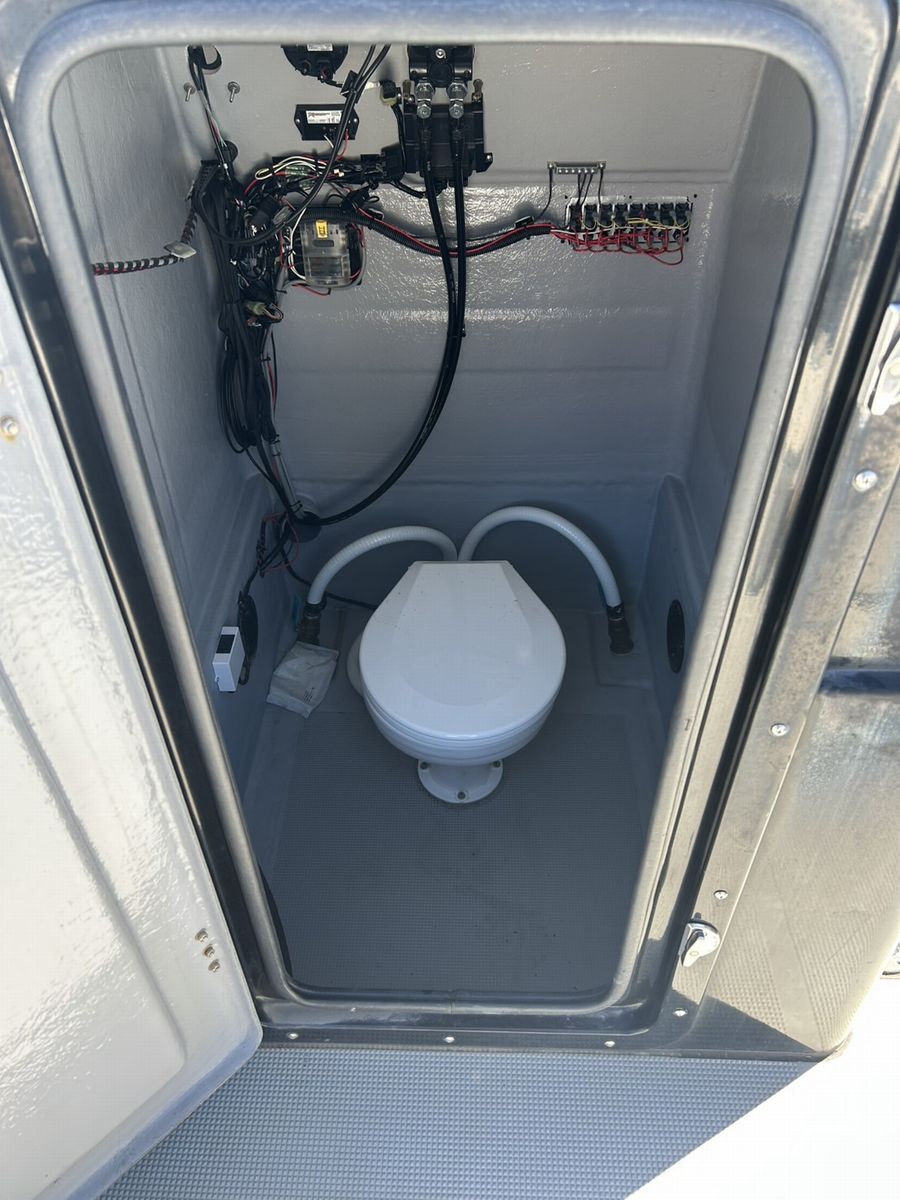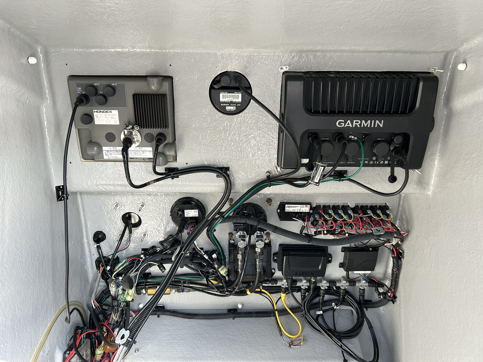 船体コンソールの種類や位置等を入念に打ち合わせの上製作。 コンソール下の床埋込等の特注にも対応可能。トイレはもちろん、燃料タンクや小型バース等も製作可能(コンソール種類で異なる) |