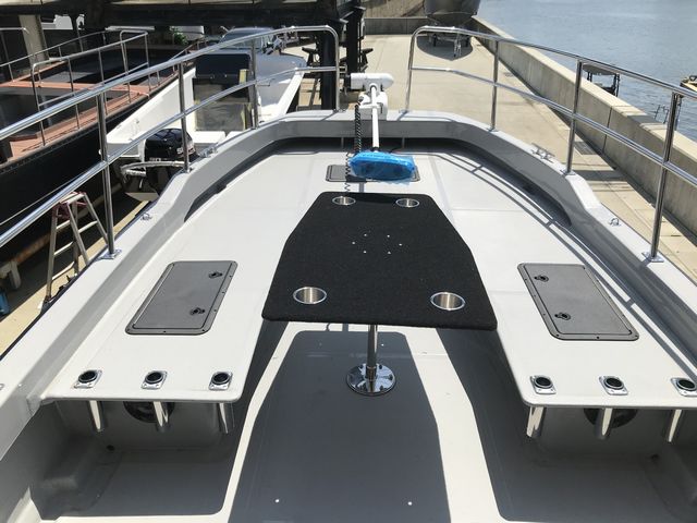 限定沿海区域対応標準長デッキ。 標準デッキからフィッシングやダイビングシーンで便利な延長デッキも製作段階で可能(平水仕様、ラウンジ仕様等)。 *イージーオーダーオプション:FRP製キャステイングデッキ(限定沿海仕様・平水仕様・長さ自在)、 フロントデッキハッチ、カーペット、ステンレスレール(バウレール)等 |