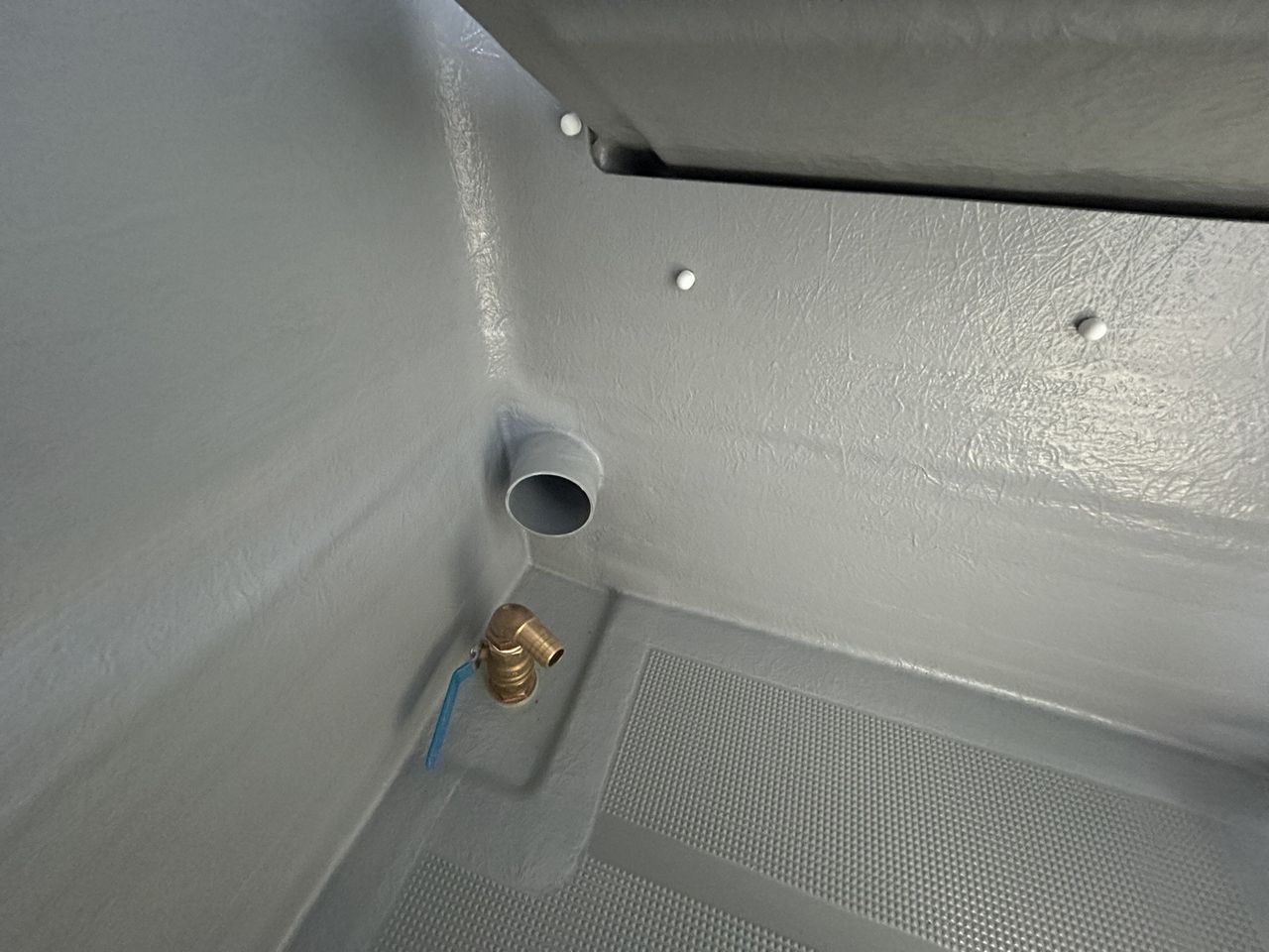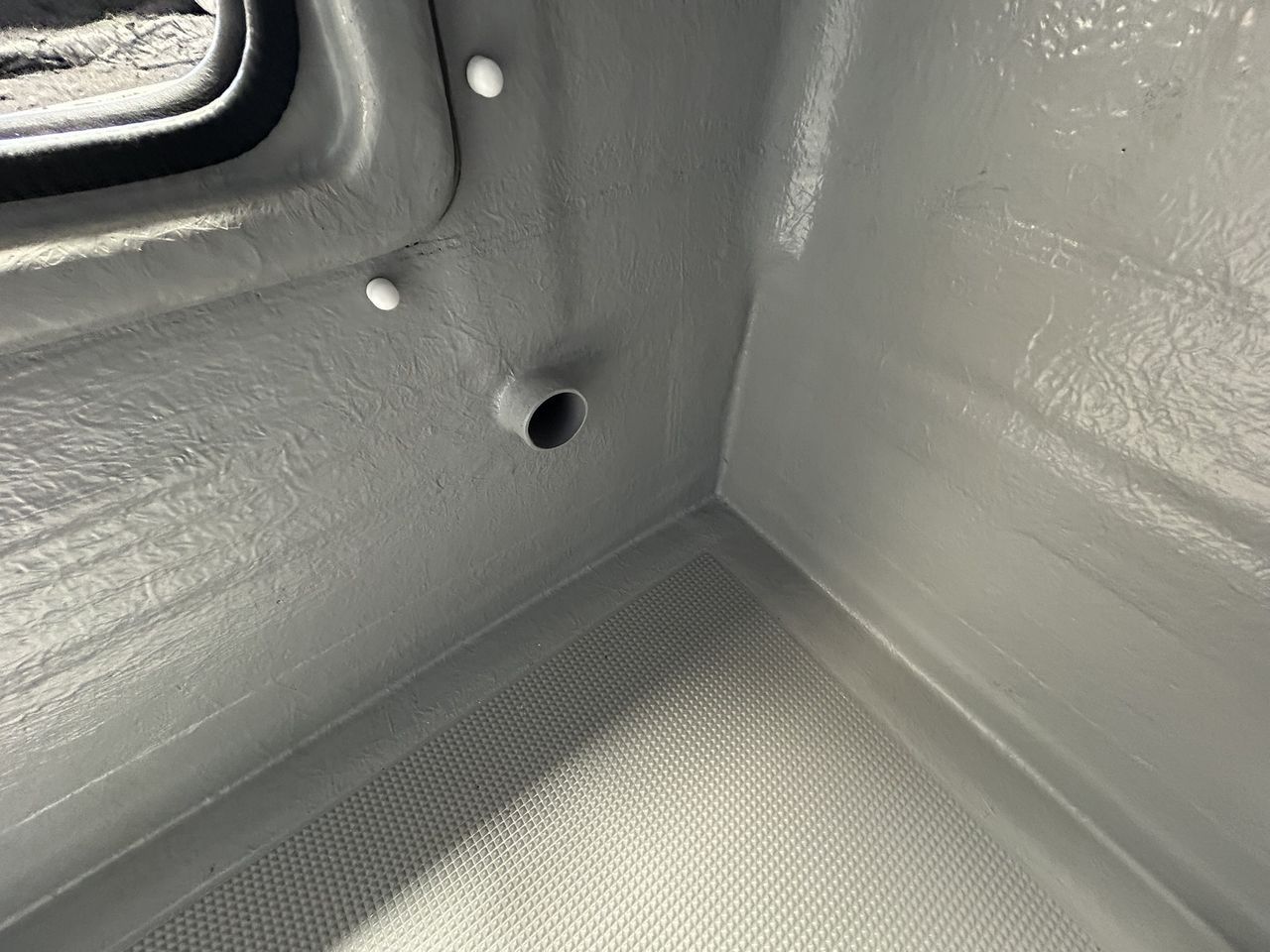 他社では無いデッキ下配線用パイプをLimitedは標準装備(スターン行、バウ行き方向各1本) コンソールに集結するエンジンや電装品の配線を通す際、必要不可欠な船体中に有る大型で太いパイプ。エンジンだけでは無く、フロントデッキ等で搭載するエレキやウインドラス配線のリギングが簡易に行えます。 船は太鼓と同じ。波で収縮する船体を空気が空気層から外部に漏れない事がベスト。 |