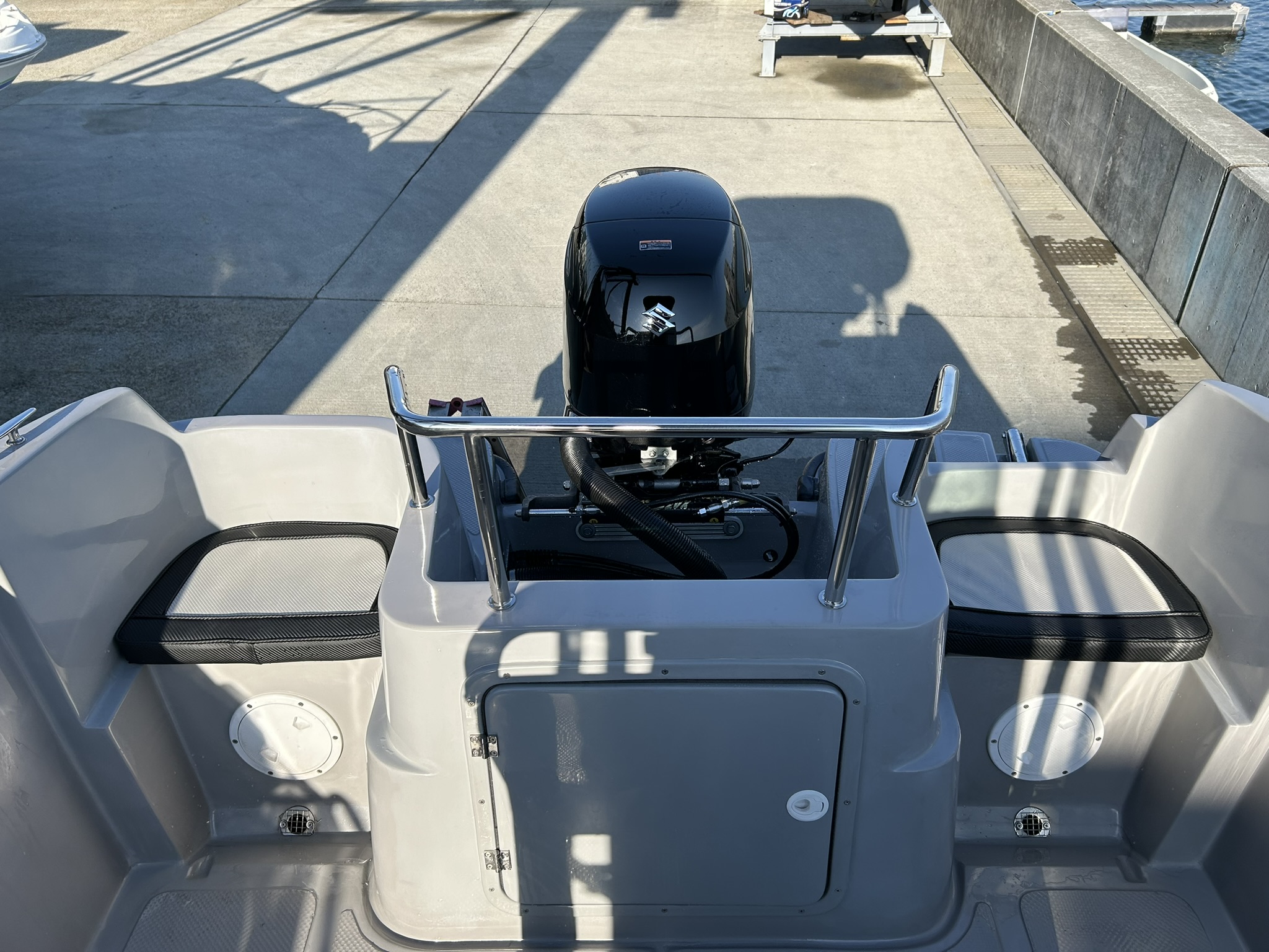 優れたデザインのPRIDEスターンとエンジンウエル。スターンレール。 |