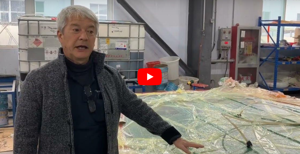 真空引き工法により減圧されたデッキは圧縮された状態となります。FRP樹脂は隅々まで充填され完全に空気が抜けた状態になります。 そのため強度と硬度が増しデッキを叩くと金属に近い音となります。 |