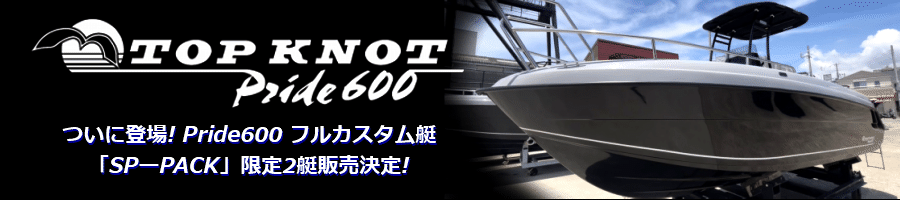 トップノット発のマルチパーパスセンターコンソールボート、PRIDEー600cc。他シリーズから継承される 「タフネス」と「トップノットテイスト」をニューコンセプトボートに集約。 フィッシング、クルージング、マリンレジャー等、お好みのシーンを全てこなせる一台。船体内蔵燃料タンクとトップノットスリムタイプコンソールが船体に付属で標準装備。 コンソールもアップグレードシステムで 他のコンソール等に入替可能。 推奨馬力は70-90馬力(25-32ノット前後)。プライドシリーズ、プラチナシリーズは「イージーオーダーカスタム艇」。 当社で常に在庫を保有しておりますのですぐに艤装開始が可能となりました。ご成約から納品まで3-4ヶ月を目標としております。