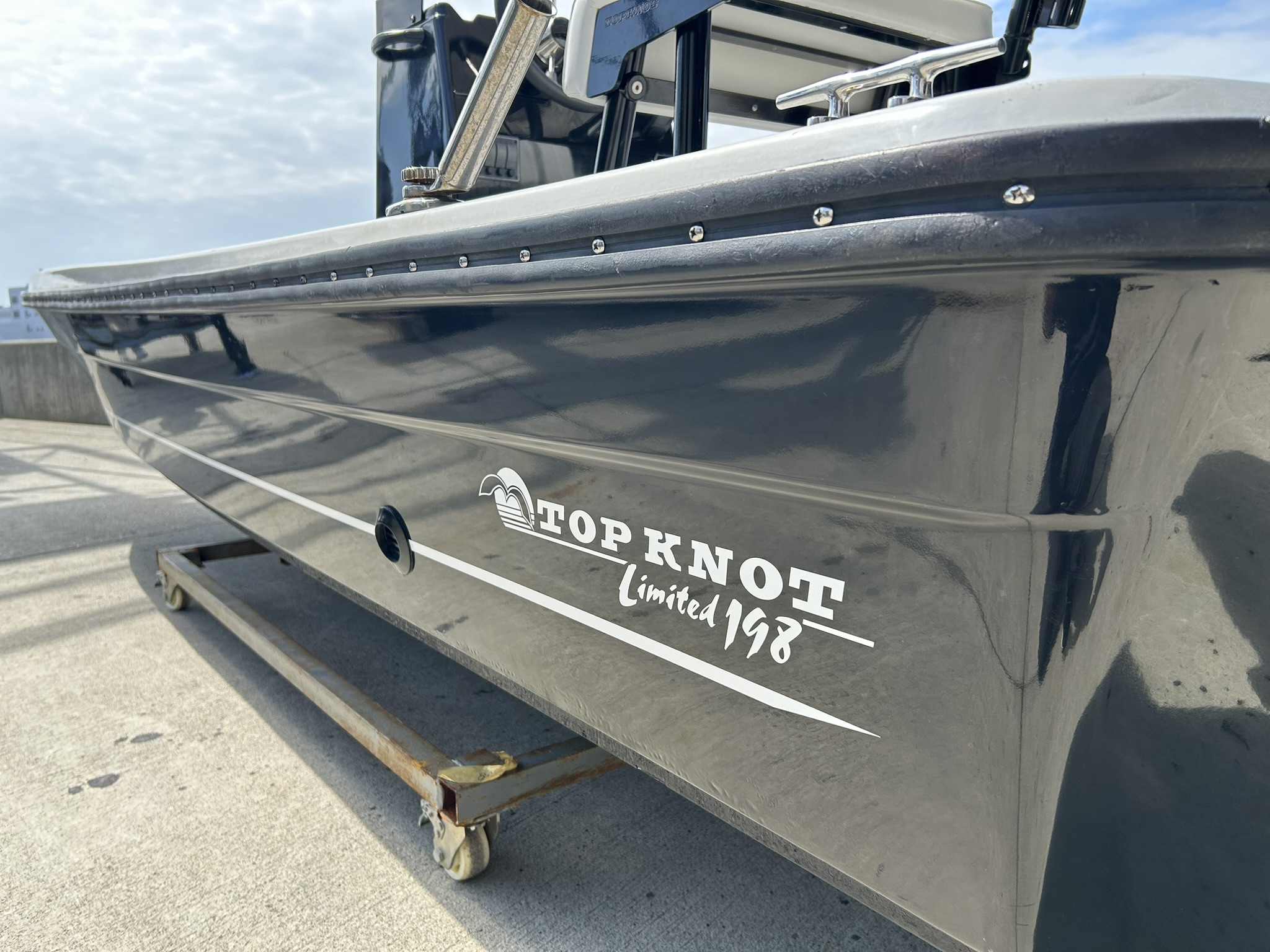 同クラスの船の中では類をみない圧倒的なバランスと操縦性、シャープな波切。トップノットがベイエリアフィッシングに特化させて設計したレアなボートです。