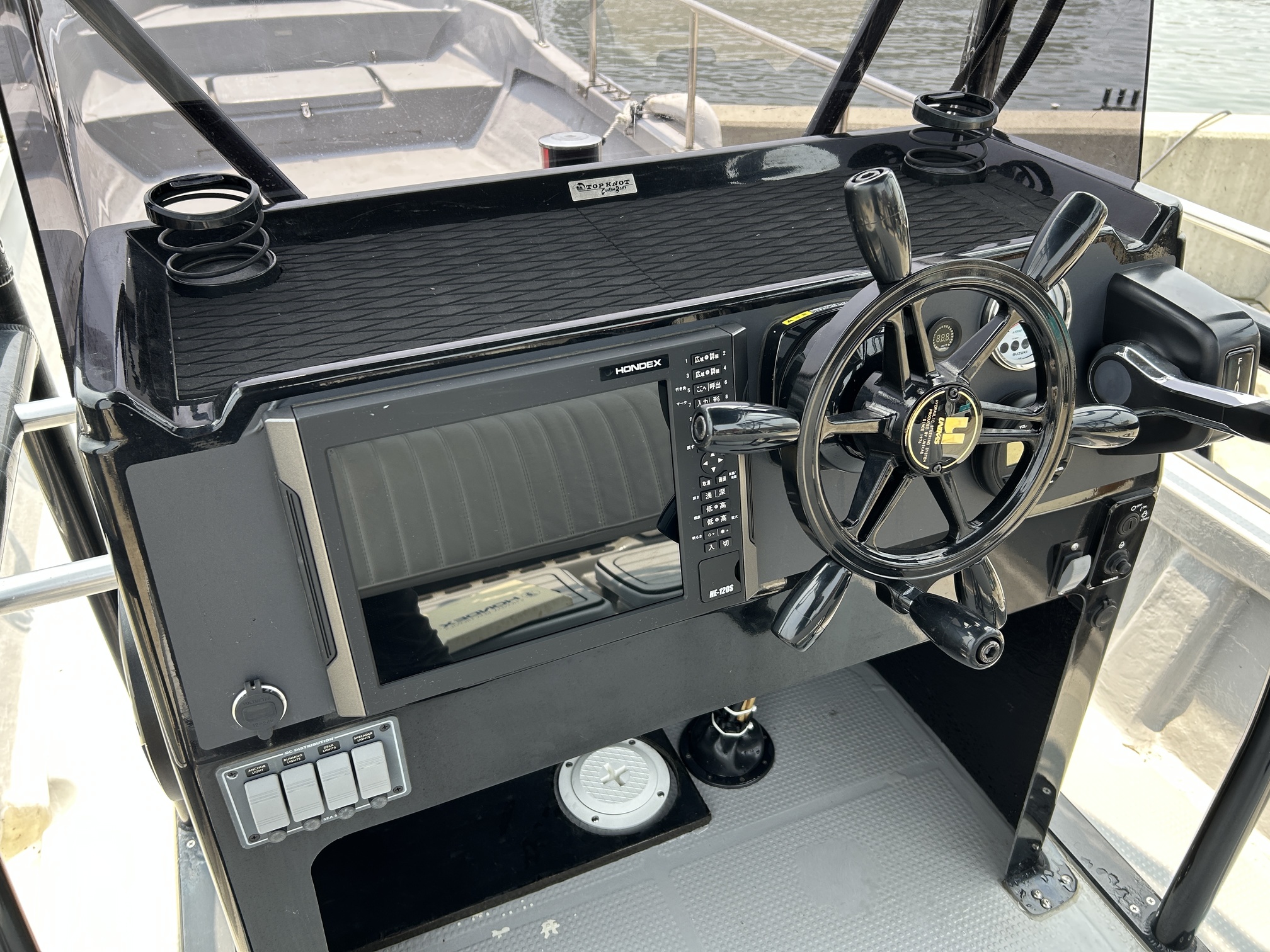 ワイドコンソール、HONDEX120S、エレキ用カスタムベース、油圧ステアリング、DF-90馬力(約900時間)。