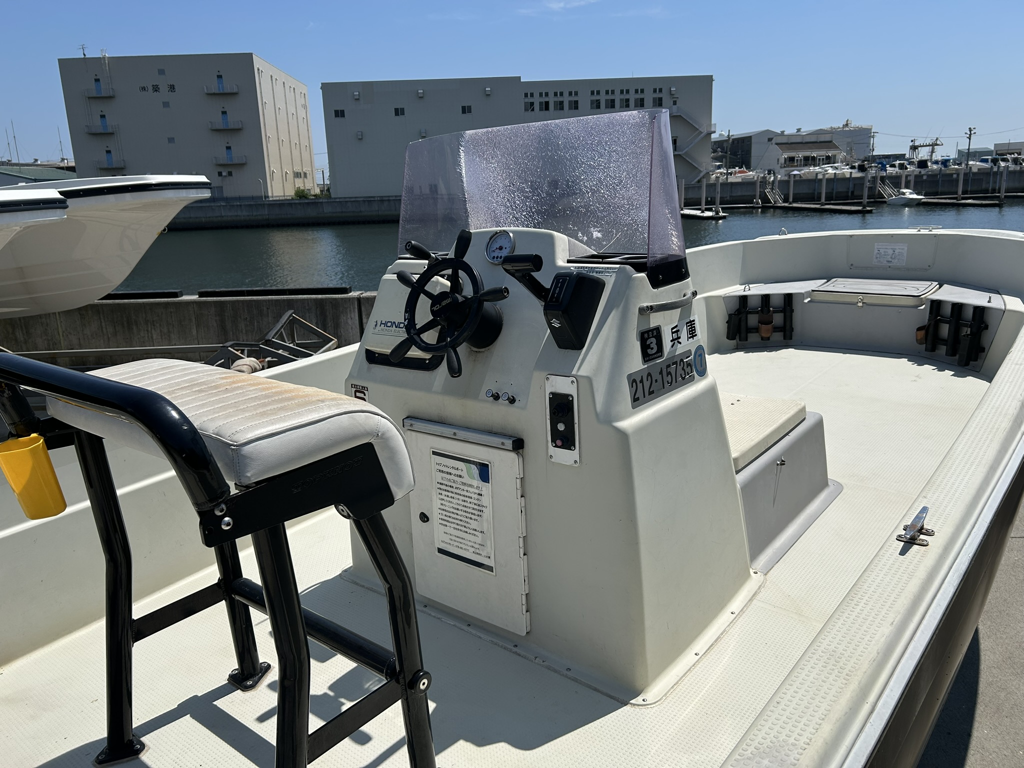 | 搭載オプション | 油圧ステアリング・リーニングシート・HONDEX GPS魚探8インチ・スズキ燃料タンク25L 1本・生簀 |